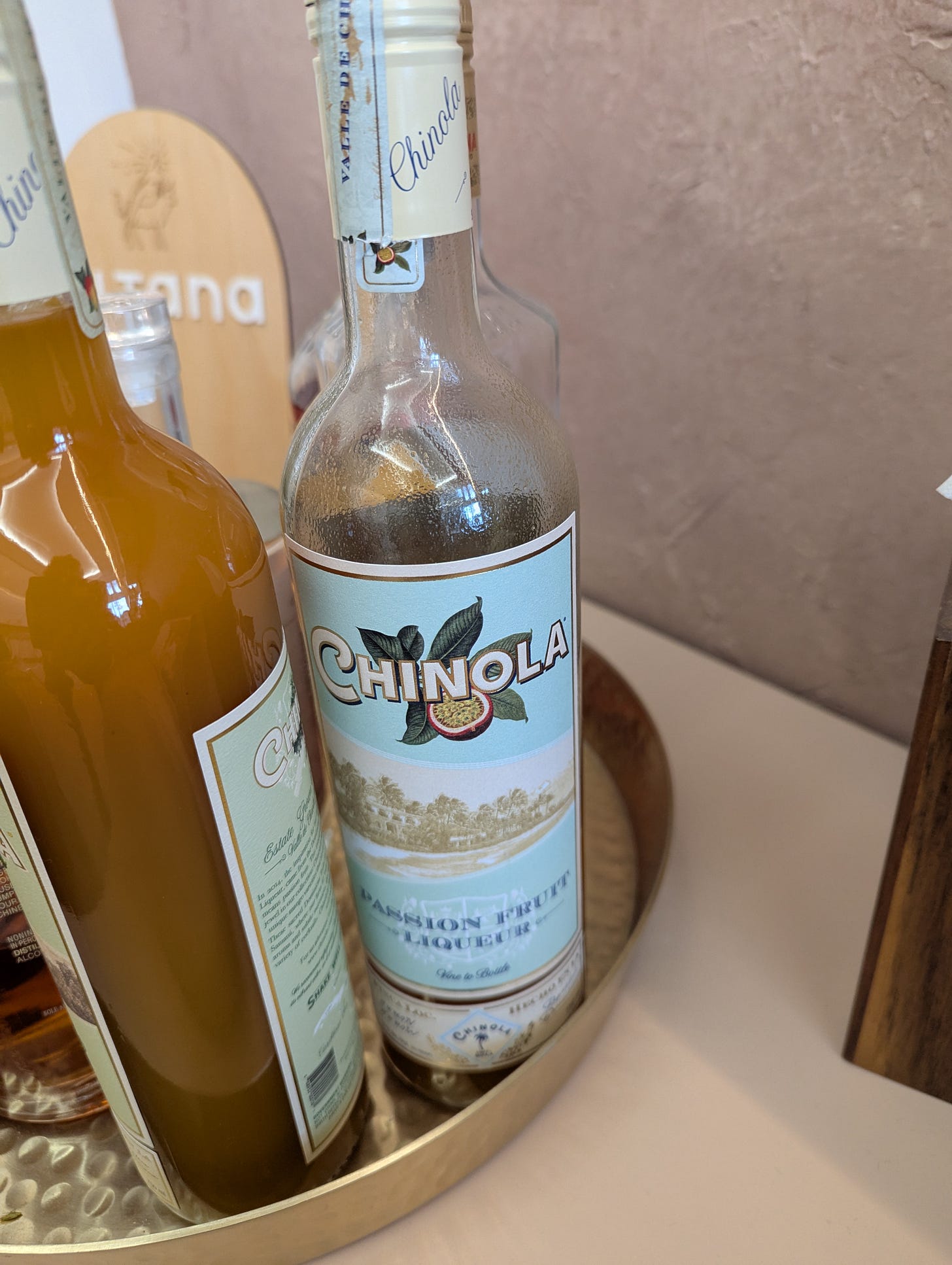 Speaking of fruity gourmet cheekiness, I spotted a bottle of Chinola, with a C, in a very hospitable Oakland jewelry shop and paused to admire the graphics on the label and to wonder about the origin of the name.